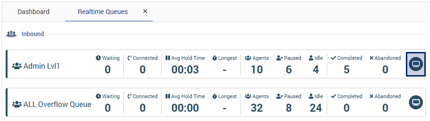 5. Select the wallboard icon next to one of the available queues.